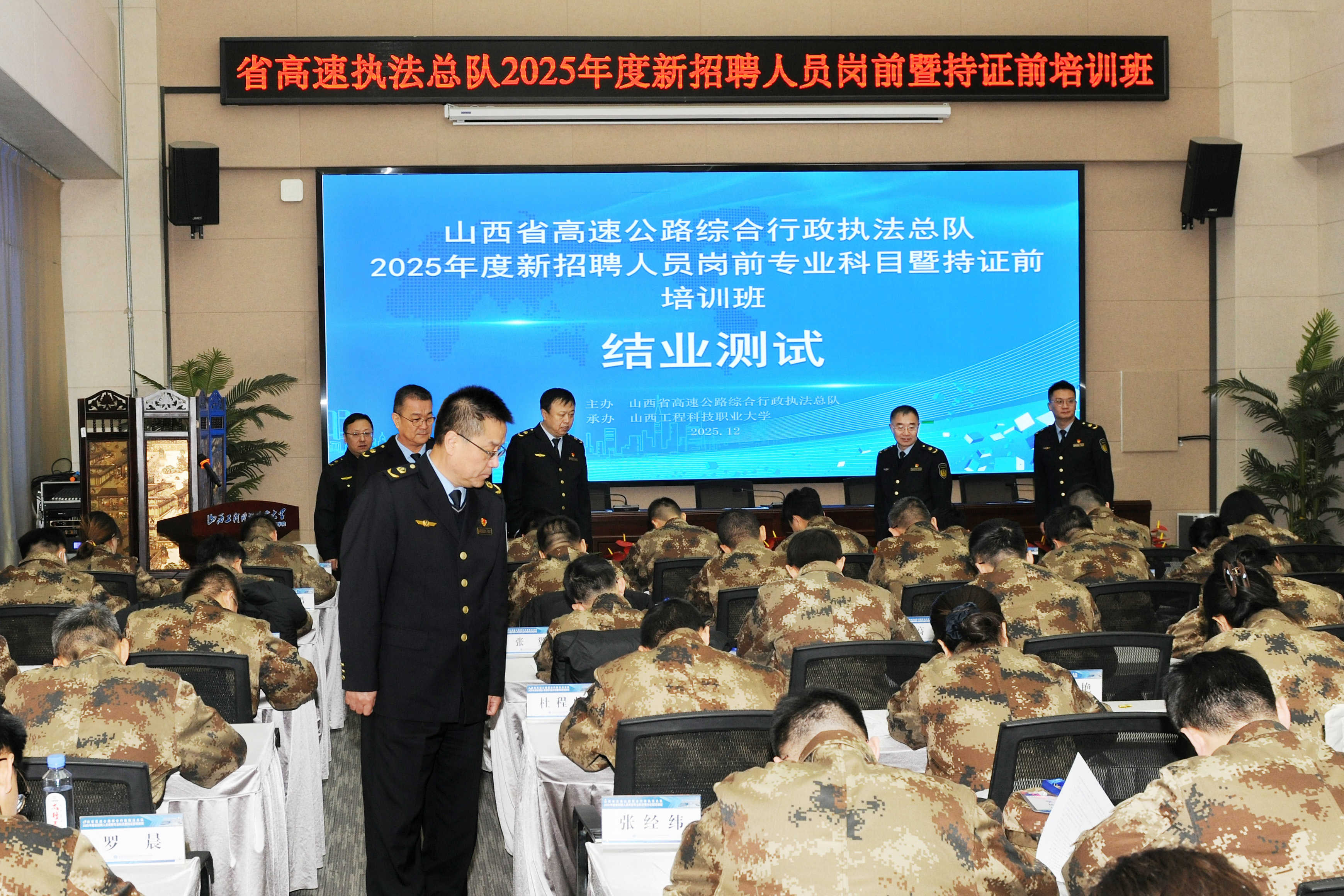 12月16日,省高速公路综合行政执法总队2025年度新招聘人员岗前专业科目暨持证前培训班圆满完成各项教学任务,顺利结业。党委书记、总队长刘清平,副总队长渠刚出席结业仪式。副总队长任晓军作总结讲话。副总队长郭锋主持结业仪式。
