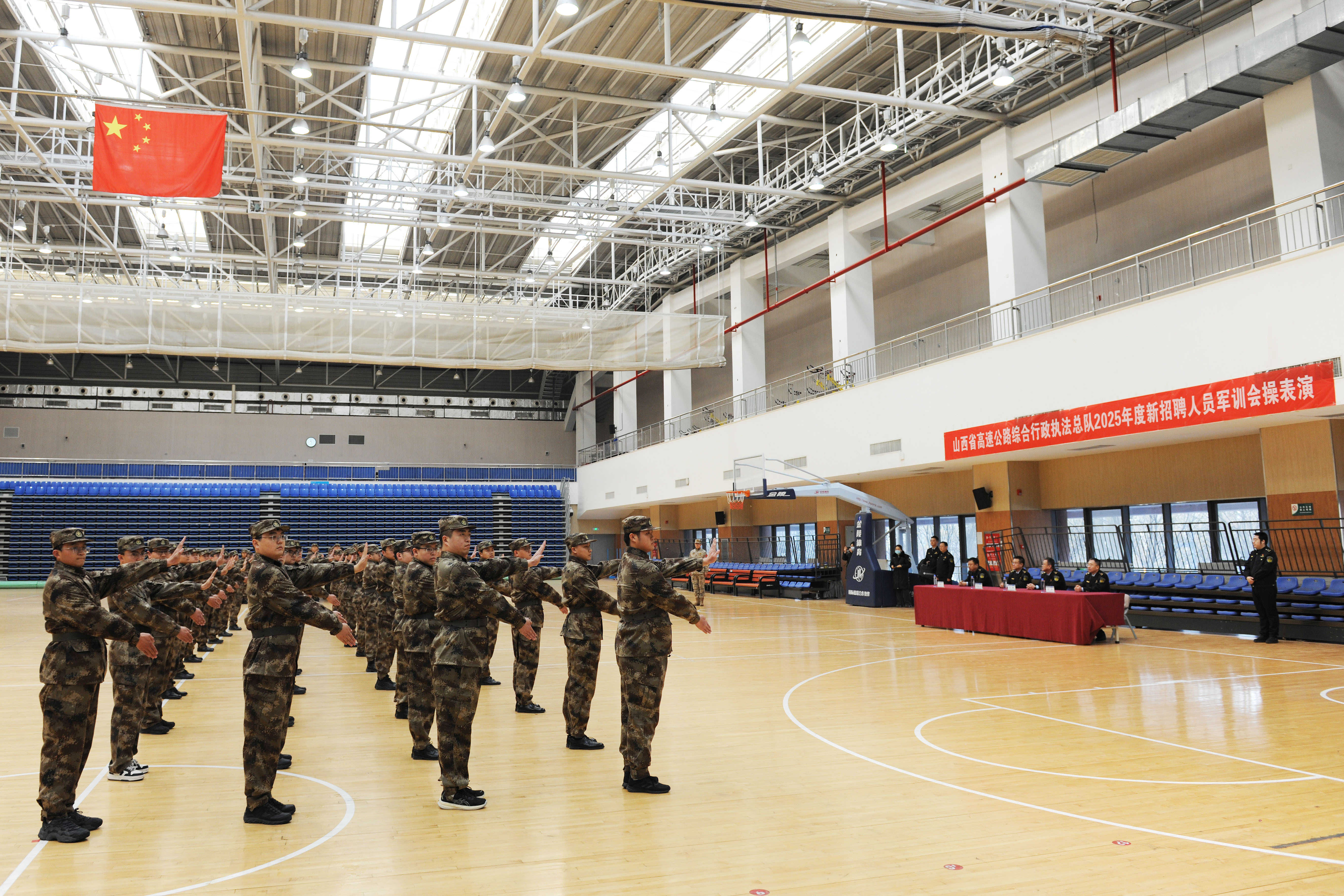 在结业仪式前,安排了结业考核测试,随后组织了军训会操表演。两个男子方队与一个女子方队依次登场,以昂扬的斗志、饱满的状态、整齐的队列、响亮的口号,全面展示了军事化训练的扎实成果,并熟练完成了规范流畅的交通指挥手势操展演,充分展现出新入职人员训练有素的精神风貌。