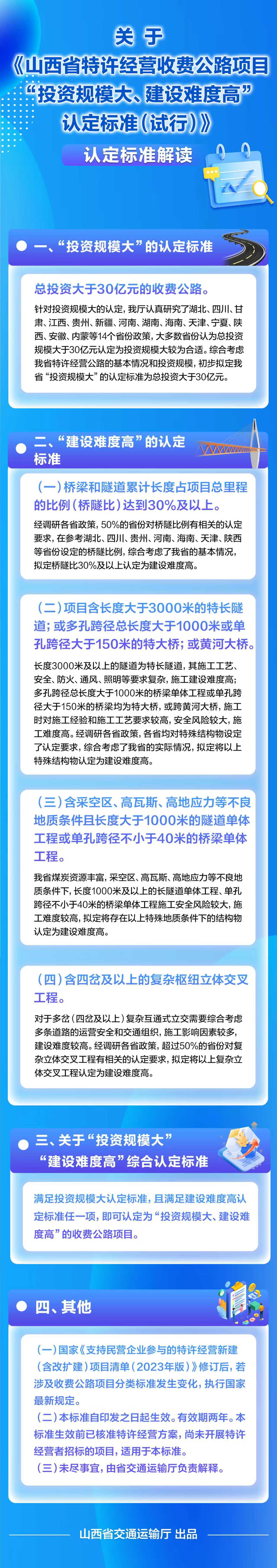 山西省交通运输厅关于印发《特许经营收费公路项目“投资规模大、建设难度高”认定标准(试行)》的通知